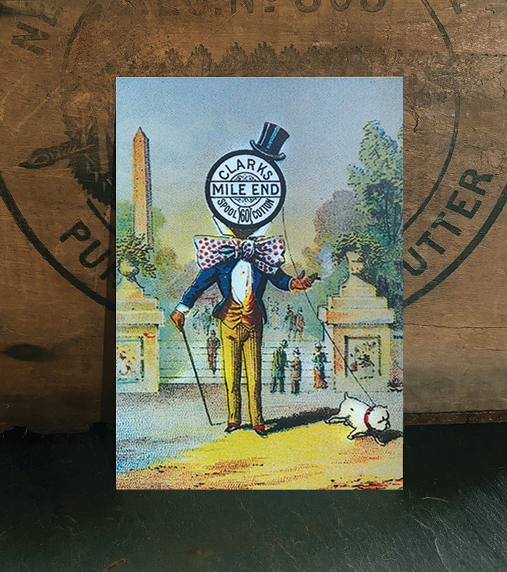 Trade cards were common in the 1800s, and often showed offbeat images that existed to build brand buzz. Clarks Thread Co was especially inventive.