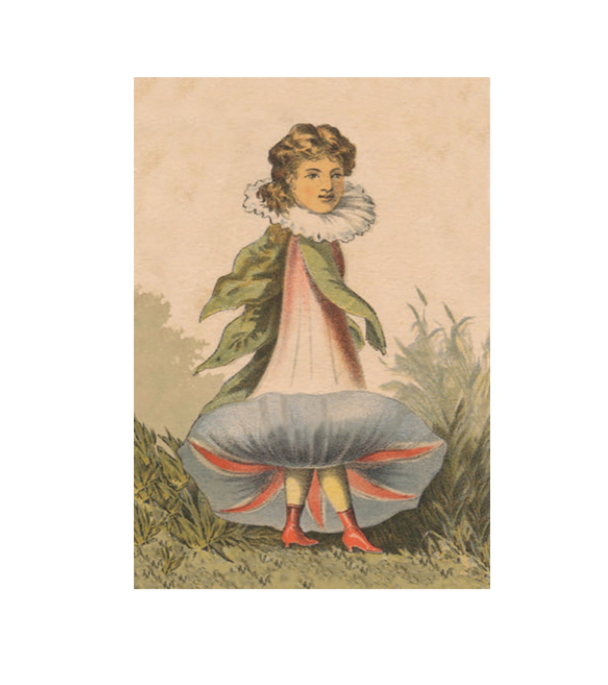 Trade cards were common in the 1800s, and often showed offbeat images that existed to build brand buzz. This is part of a collection we are working on of anthropomorphic plant people.