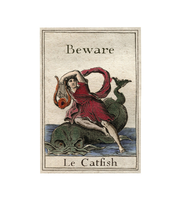 The image is a humorous take on the Greek mythological story of Arion, a poet and musician (kitharode) known for his rescue by dolphins. Great for sending to people on dating sites ;)
