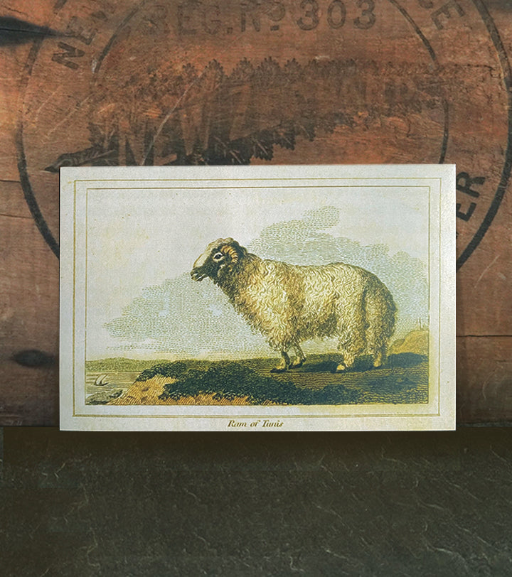 In the year 1774, a ram was exhibited at the fair of St. Germain, as a ram of the Cape of Good Hope; but it was found that it had been purchased at Tunis, and although considered it to be of the same species as the Barbary sheep, due to the difference in the shape of its head, it was called the ram of Tunis. This image is adapted from the original in Buffon’s Natural History published in 1807.