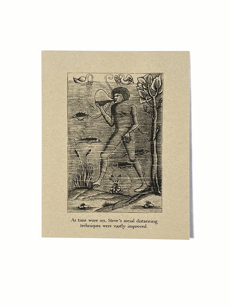 Text: "As time wore on, Steve's social distancing techniques were vastly improved"